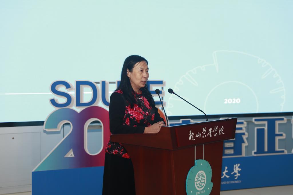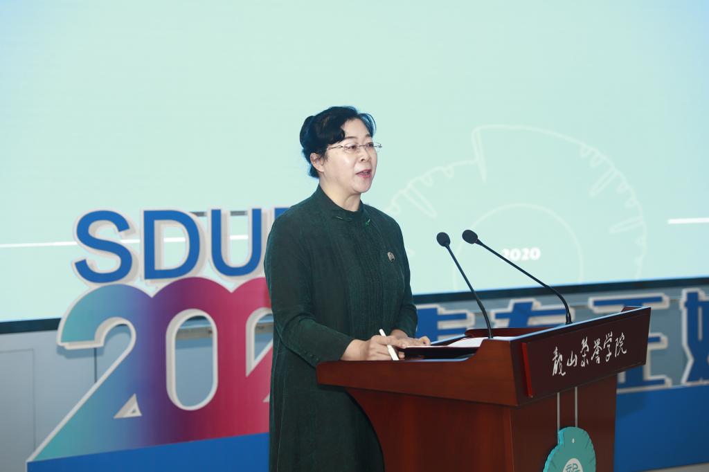 赵忠秀在致辞中指出,今天是龙山荣誉学院诞生和发展过程中重要的时刻,注定会写入山东财经大学的历史。他强调,龙山荣誉学院全体师生是一个荣誉共同体,也是责任共同体,要把学院承载的人才培养模式改革的使命完成好。赵忠秀用四个关键词勉励2020级新生:一是荣誉,要有舍我其谁的霸气,勇于承担这份沉甸甸的荣誉;二是责任,要成为山东财经大学的楷模,要为全校32000余名学生树立榜样;三是汗水,要用勤奋和努力,克服学术路上的艰辛和困难,攀越险峰,沐浴知识的霞光;四是卓越,要用高尚的品格、健强的体格、探索的精神和能力助力自己勇攀学术高峰,成为业界领袖。