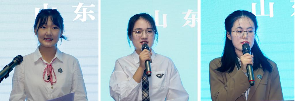 在校生代表张淳、研究生新生代表金颖、本科生新生代表高晓坤分别发言。学院全体师生共同佩戴院徽并合影留念。