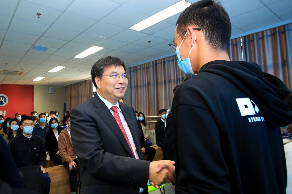 赵忠秀在讲话中指出,龙山荣誉学院是学校荣誉教育体系的塔尖、是最闪亮的明珠,他对2020级学生在课程学习、创新竞赛、社会实践等方面的成绩表示肯定,鼓励同学们要延续创新,要通过严谨的学术训练,逐步成长为创新团队中最活跃、最有创造力的一份子。赵忠秀特别强调,龙山荣誉学院是一个命运共同体、荣誉共同体,也是责任共同体,加入龙山荣誉学院,不是享有特权,而是承载着沉甸甸的责任,要在展示优良学风、追求卓越等方面,为全校树立榜样,为学校建设全国一流财经特色名校贡献力量。