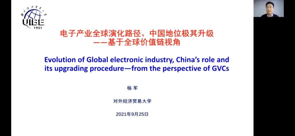 本次讲座的主题为“全球价值链视角下电子产业的全球演化路径、中国地位及其升级”。首先,杨军教授向我们系统地介绍了全球价值链在世界范围内的发展趋势,描述了中国在中间品贸易中的重要地位,并借此引出了电子产业这一经济增长的重要引擎。接着,杨教授介绍了世界各国电子产业的地位演变,并以华为等数字企业为例对中国电子产业由弱到强的发展进行生动讲述。再次,杨教授用严谨的统计数据,清晰地阐明了中国电子产品贸易结构的变化,分析了中国数字产业独特的升级路径,并从后向依赖和前向关联的角度阐述了中国电子产品增加值的主要来源和去向。随后,杨教授剖析了电子产业强大的扩散效应,指出中国数字产业面临的诸多问题,同时也指明了中国电子产业的升级路径对其他发展中国家的示范作用。最后,杨军教授就该方向更进一步的研究进行了展望,同时鼓励有兴趣的同学从该角度出发进行深入研究。