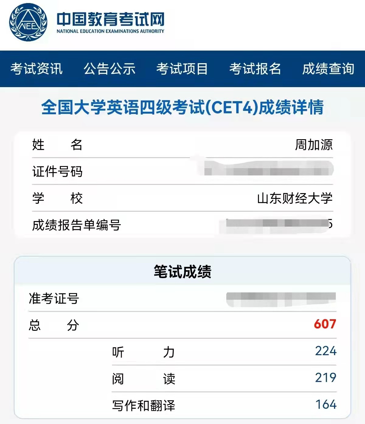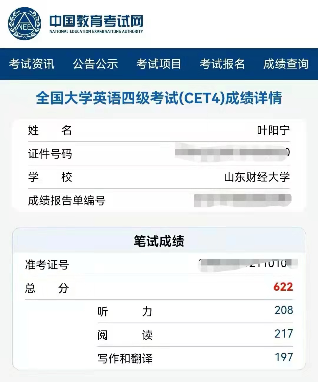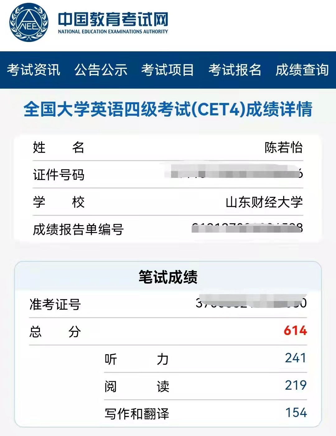 近日,2021年下半年全国大学英语四级(CET4)成绩查询服务开通,经统计,我院2020级经济学科拔尖人才实验班、管理学科拔尖人才实验班一次性通过率达100%,平均成绩546.9分。其中600分以上6人,占比15.4%,550分以上20人,占比51.3%。