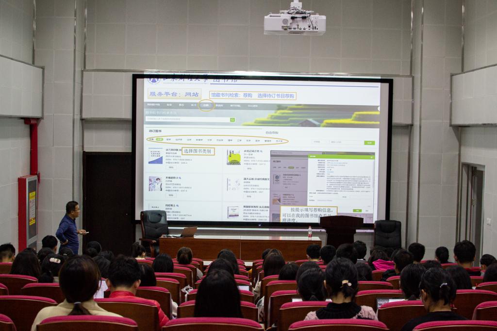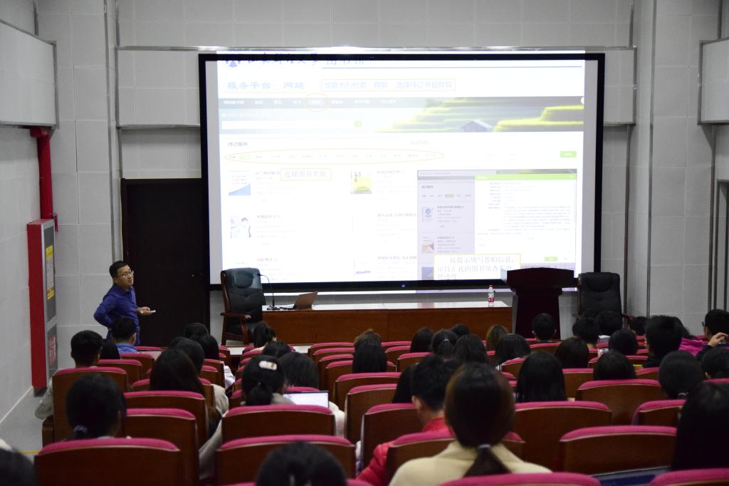 张正禄老师从校图书馆资源概况讲起,他强调,“图书馆是一所大学的灵魂”,我校高度重视图书馆建设,为同学们提供舒适友好的学习阅读环境。之后,张正禄老师又细致讲解了图书馆的“图书馆网站服务平台的纸质书检索荐购”“使用超星电子图书资源”“下载打印在大学图书馆的借书记录”等功能,希望同学们毕业时在图书馆收获丰厚的知识,争做“借阅之星”。接着,张正禄老师结合对“中国图书馆分类法”的介绍,引导学生正确认识并使用图书馆索书号与导卡,并以图片形式展示“图书阅览与自助借还流程” ,帮助同学们深入了解图书馆服务情况及借阅细则,呼吁学生遵守“文明读者守则”。此外,张正禄老师还希望学生们积极参与信息素养教育及阅读推广活动,积极参与校园书香文化建设,培养书香之气,建立文化校园。最后,结合龙山荣誉学院学生培养特色,张正禄老师通过现场示范展示了中国知网(CNKI)系列数据库的检索与利用,从“主页数据库分布”“引文数据库”“检索结果分析筛查”“CNKI指数检索”“期刊导航”等多个方面介绍了如何检索利用数据及文献,为学业论文写作提供指导。