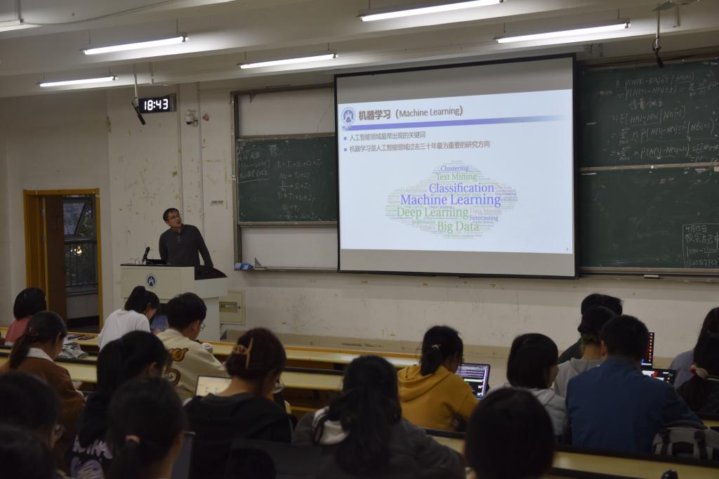 四月十四号下午,龙山荣誉学院荣誉导师系列讲座“师说”第三期“财经类高校拔尖创新人才生涯发展规划”在5306开讲,本期活动由龙山荣誉学院举办,邀请了计算机科学与技术学院老师崔超然担任主讲。龙山荣誉学院本科生与其他学院同学一百五十余人参加。