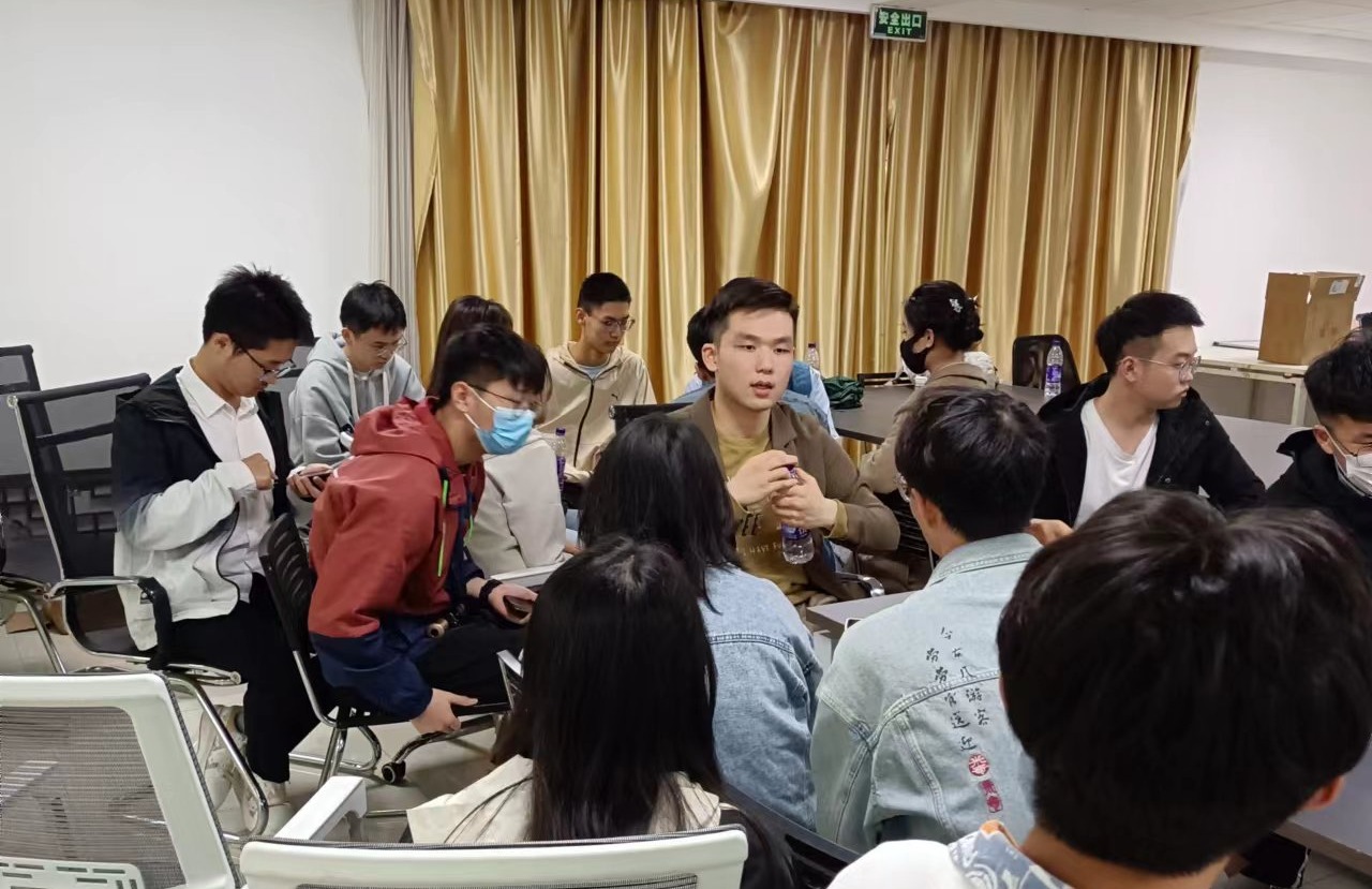 山东大学SDU学生创新创业协会副主席丁子阳学长以“1个中心,n个基本点”为基础,向同学们展示了他的大学生活。丁子阳认为,在以学习为中心进行全方位发展的同时,“挑战杯”大学生课外学术科技作品竞赛和社会实践为其能力及经验带来较大的提升作用。紧接着,他从个人经历出发,向同学们细致描述了他在社会实践和竞赛中的点点滴滴。在此期间,我院同学也分享了自己参赛时的生活细节,众人其乐融融,相谈甚欢。